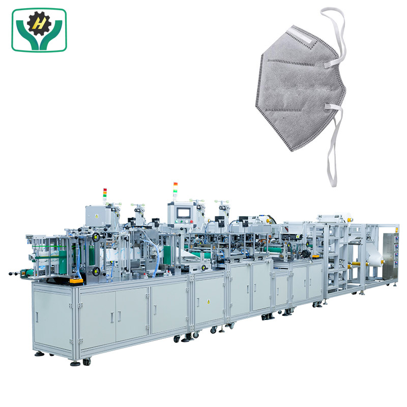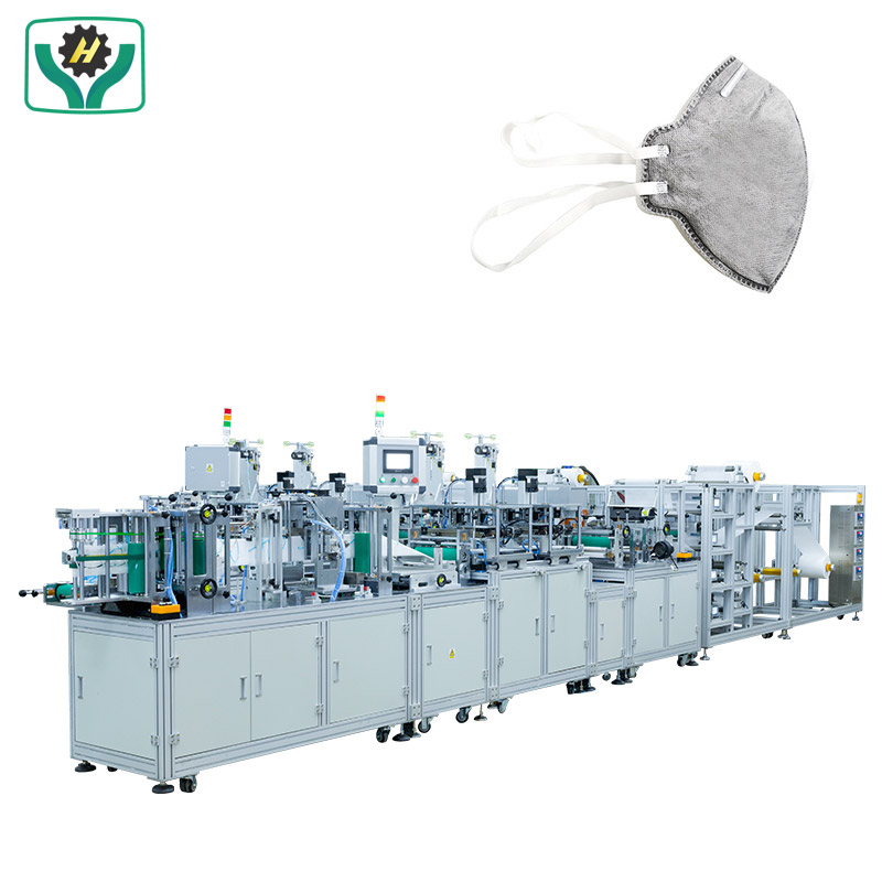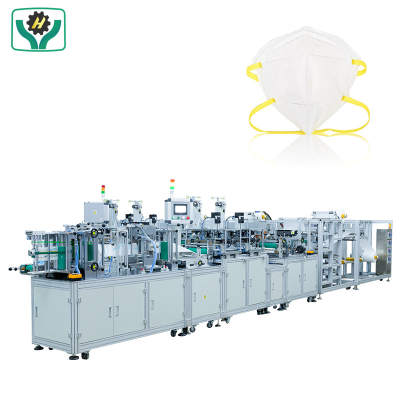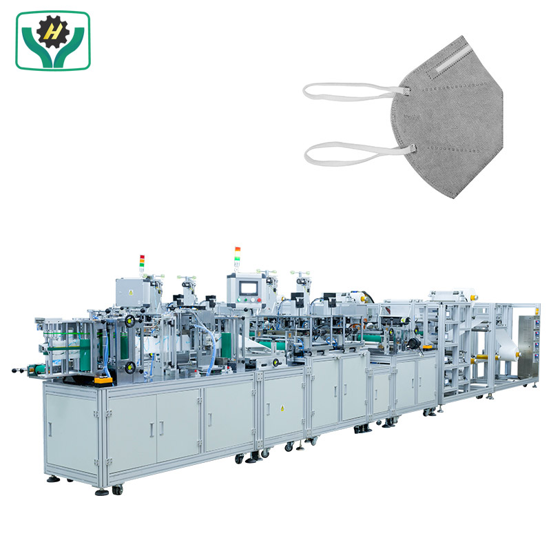 本機臺是一臺自動生產立體口罩機器,包括自動送料、自動上鼻梁條、自動計數、自動沖孔、自動影印等全部自動完成,無需要員工手動將配件放入治具,機器自動完成上耳帶功能。耳帶長度可根據客戶需求作調整,更適用于工業行業。