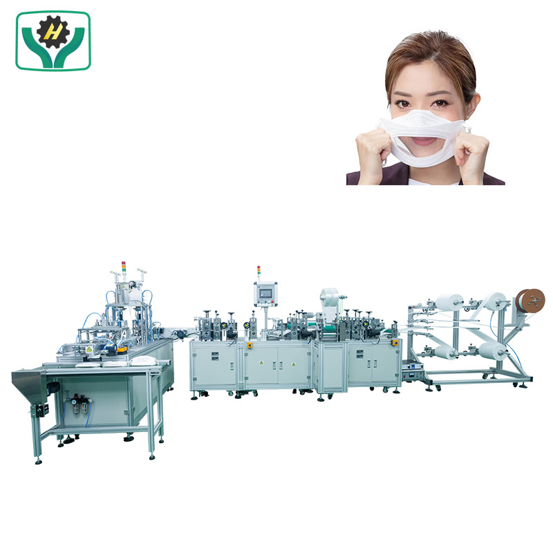 本機本機器自動化程度高,從原料上料、透明膜焊接、口罩熔切、耳環焊接、成品收集等全部實現自動化工藝,含有廢料收集裝置。 此設備可自動焊接透明薄膜,方便聾啞人士完成唇讀,辨別唇面部表情,不僅具有包容性和人性化,而且佩戴非常舒適。可選配自動包裝功能和CCD檢測系統,操作簡單,滿足客戶各種需求。