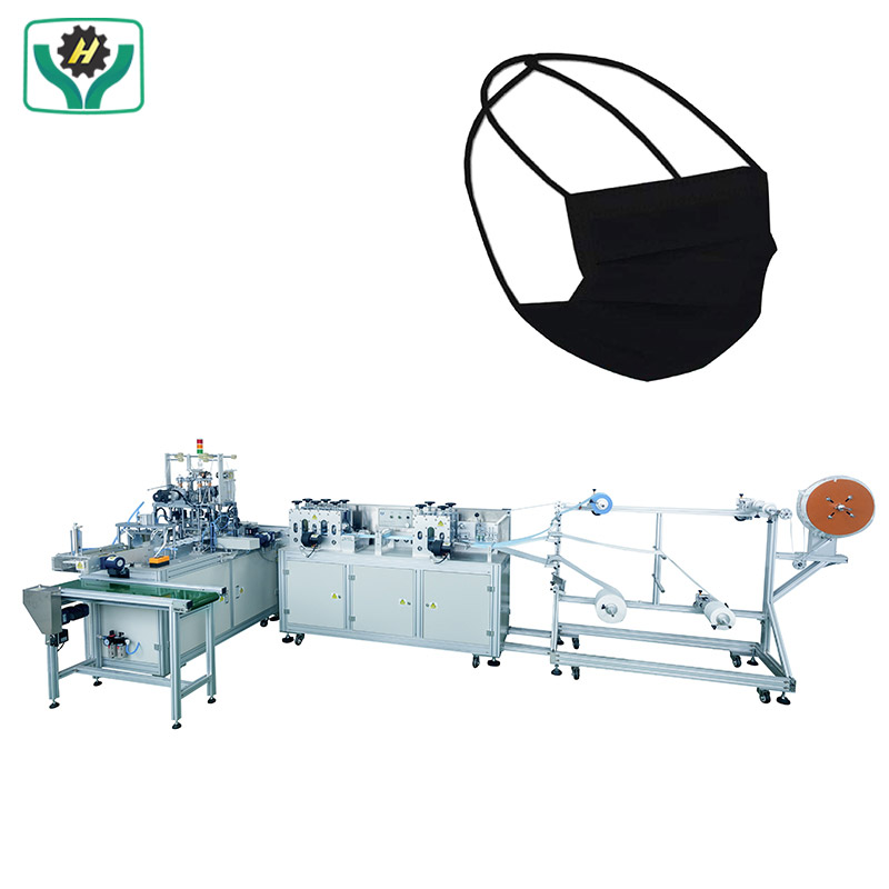 本機(jī)臺(tái)是一款生產(chǎn)交叉耳帶的平面口罩設(shè)備。全機(jī)采用PLC加伺服電機(jī)控制運(yùn)轉(zhuǎn),從原材料到成品全自動(dòng)輸出,穩(wěn)定速度達(dá)到45片/分鐘。通過(guò)使耳帶交叉再與本體進(jìn)行焊接,完成特異性口罩的生產(chǎn),為穆斯林女士解決佩戴口罩的為難之處。